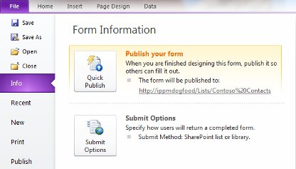 Click the File tab, and then click Quick Publish to publish the form. Click OK when prompted.