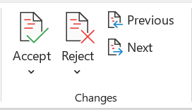 Tip:Â To move through changes in the document without accepting or rejecting them, select Next or Previous.
