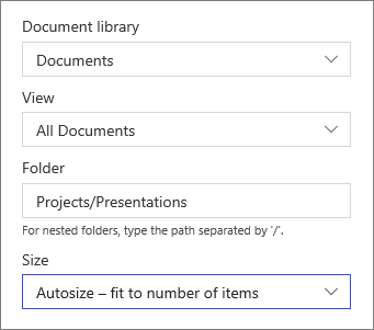 on the left side to change the Document library, the View of your library, and the size. You can also display a specific folder in the library by entering the folder name (use a "/" to separate the names of nested folders): -