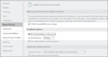Turn on audio cues to guide you as you work. Audio cues are part of sound effects, which you can find in Options > Ease of Access.