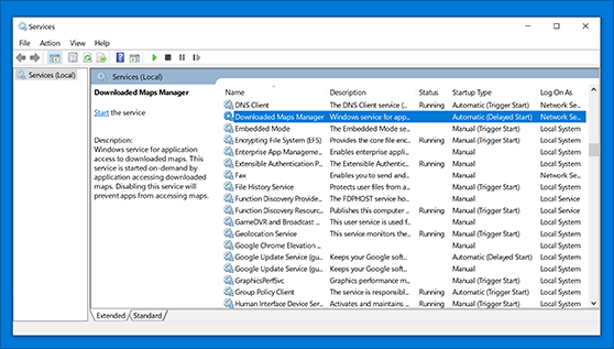 Under Name, find Downloaded Maps Manager, and under Startup Type, see if it's set to Automatic (Delayed Start).